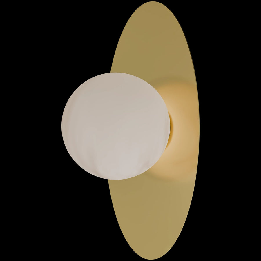 Calibo Crest Opal Glass 120mm Orb Wall Light Oval Plate 300mm | Brass