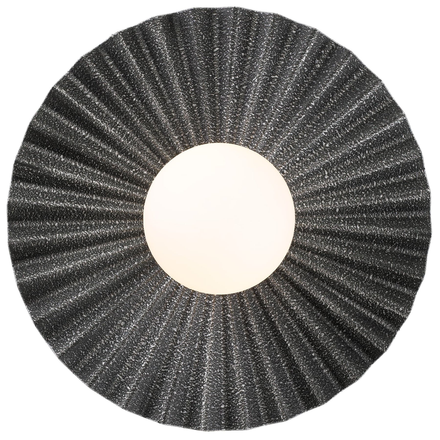 Add sculptural charm to your indoor lighting with the Telbix Kinso Small Wall Light. Measuring 350mm in diameter, this modern wall light showcases a pleated, rippled iron backplate in a textured antique silver finish, radiating a bold statement without overpowering your space. Its minimalist silhouette and opal matte glass globe create a beautiful balance of ambient lighting and visual interest — perfect for those who love contemporary or industrial interiors.