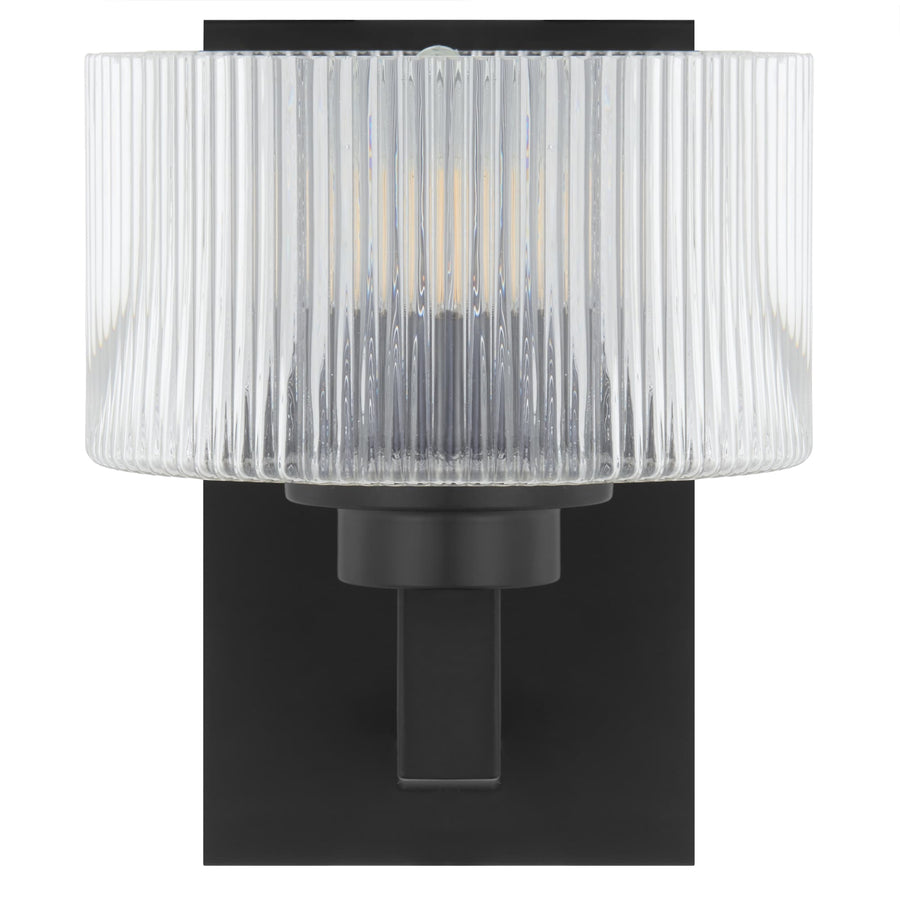 Telbix Moreno II Modern Drum Wall Light with Ribbed Glass Shade | Black