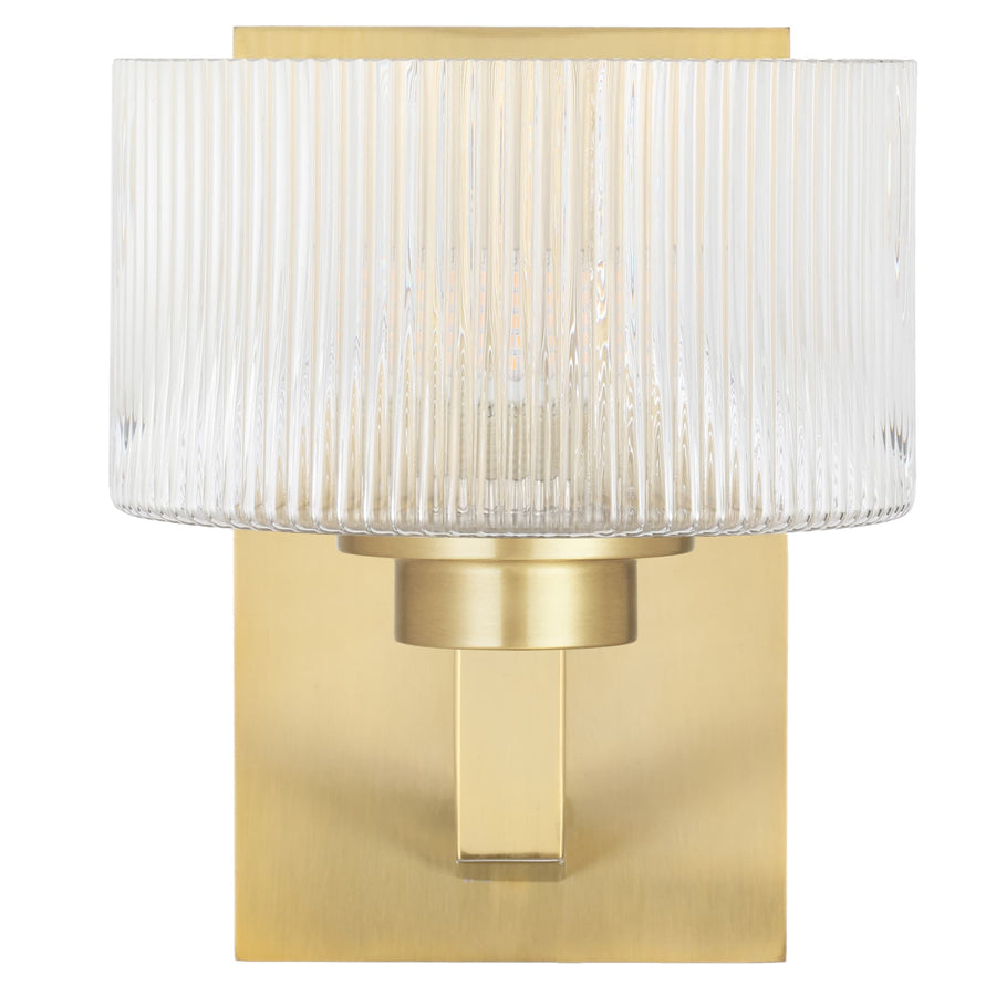 Telbix Moreno II Modern Drum Wall Light with Ribbed Glass Shade | Antique Gold